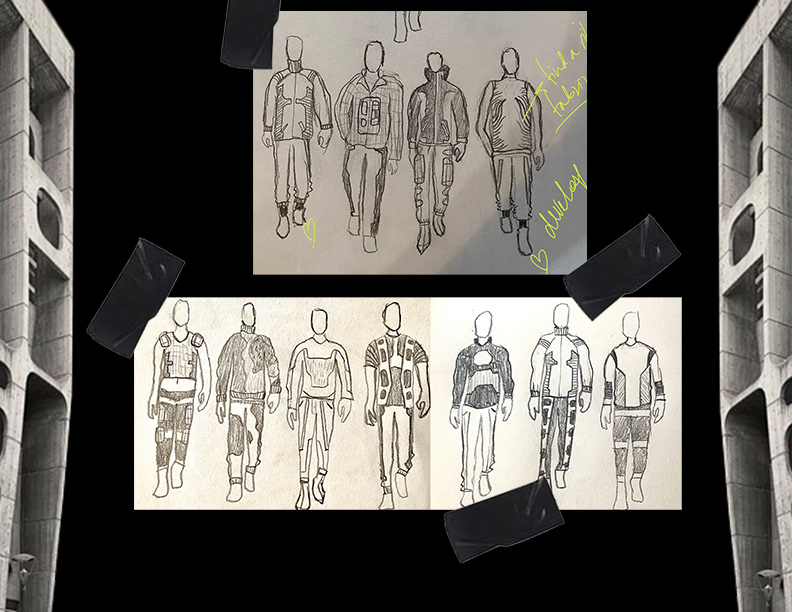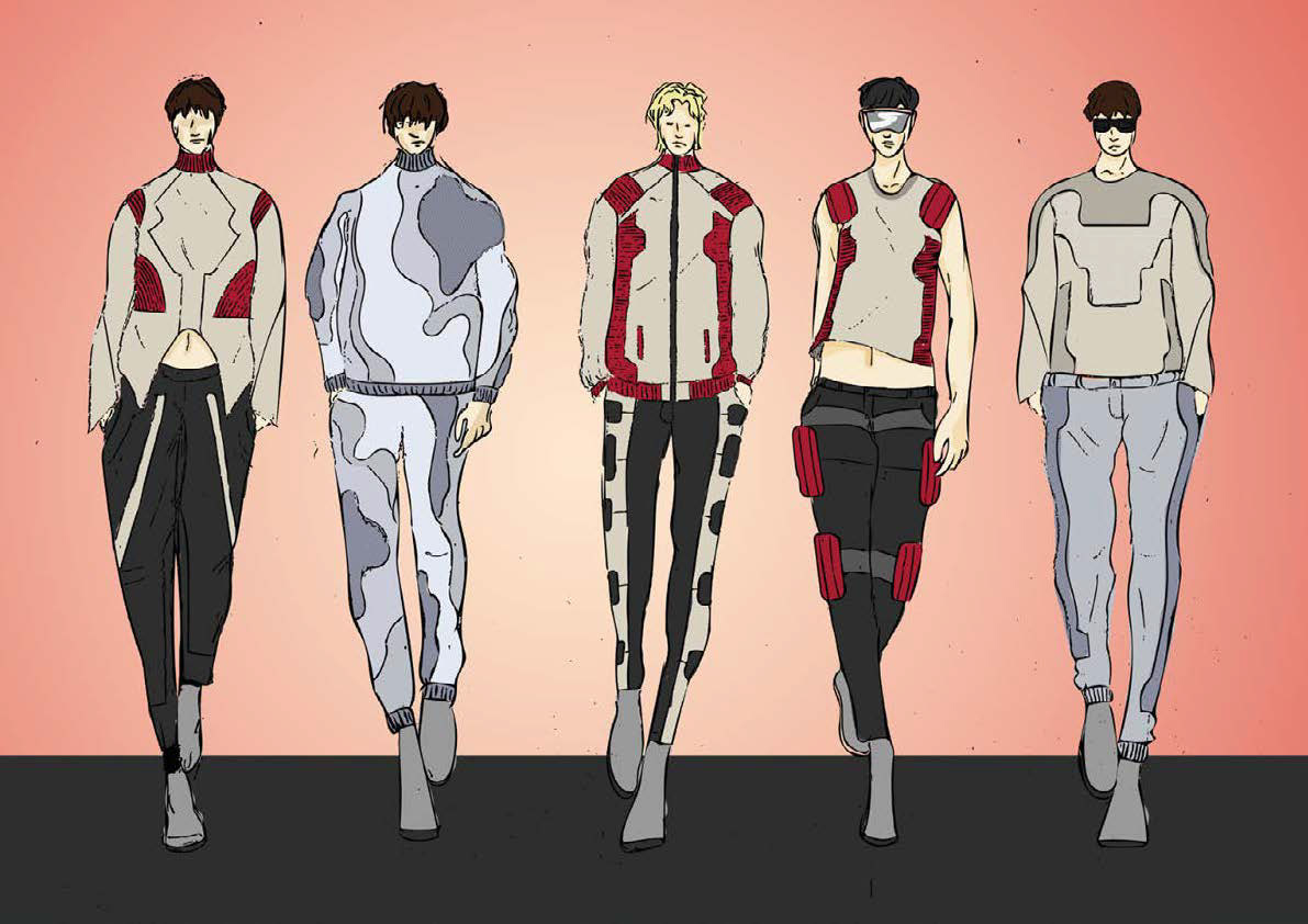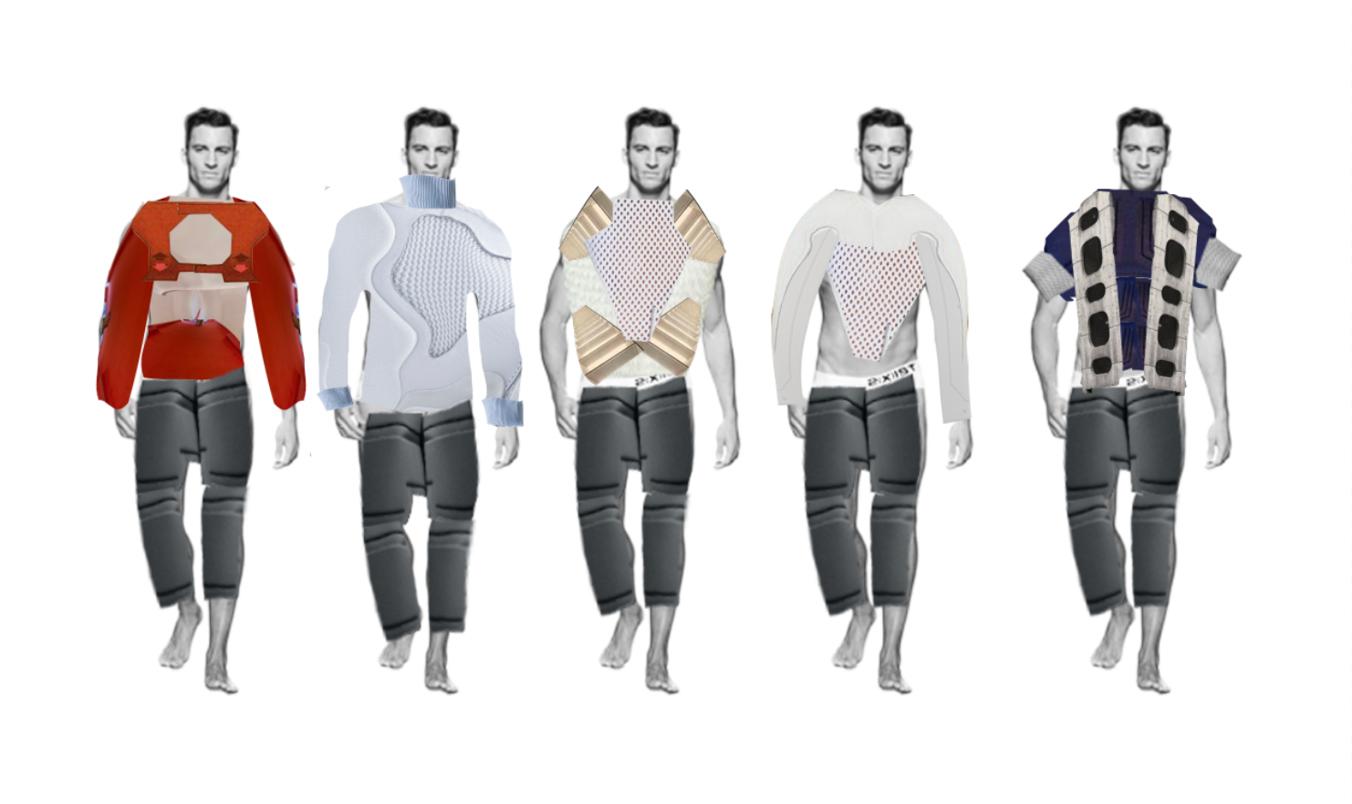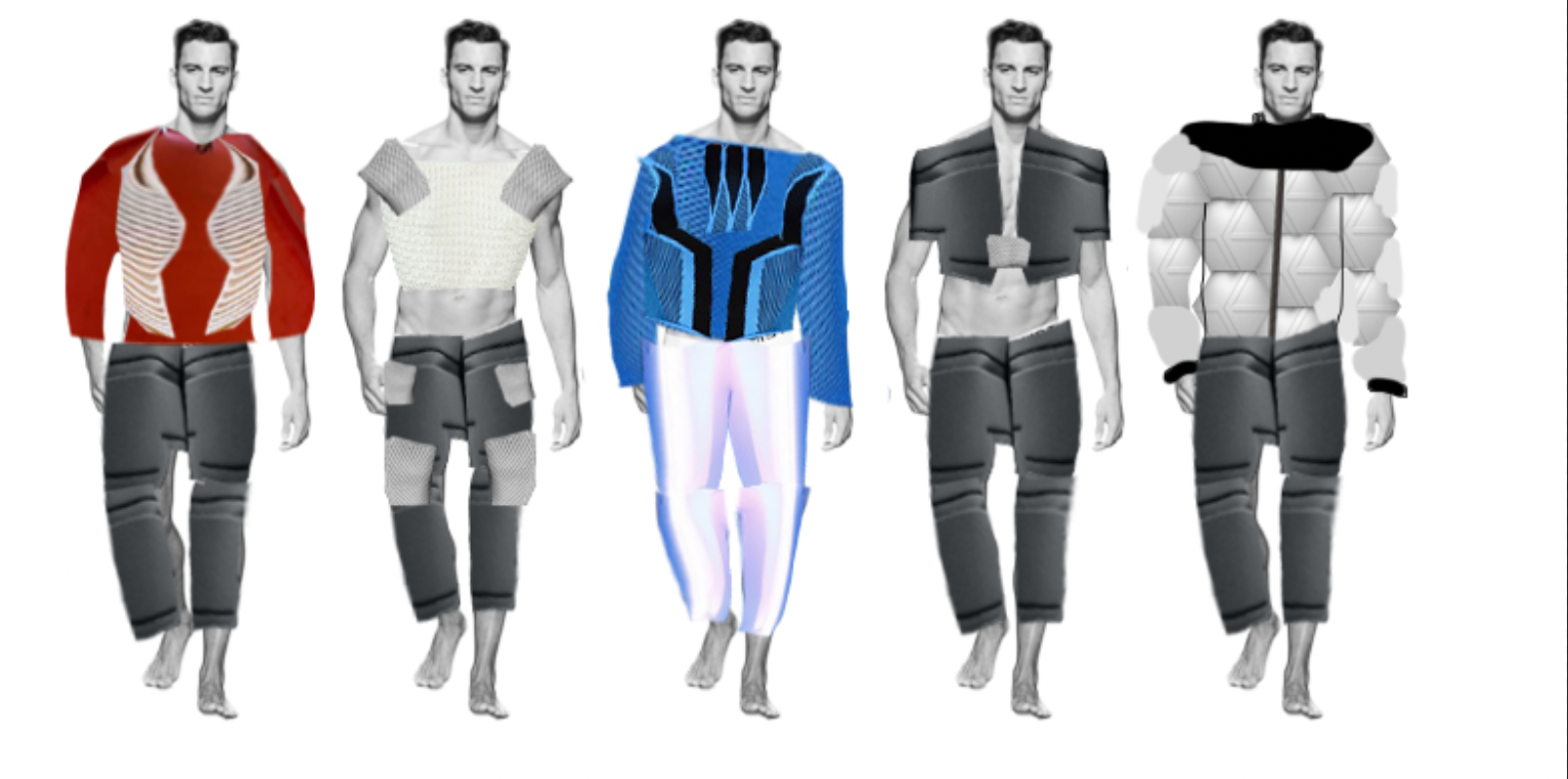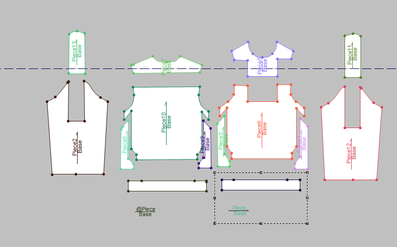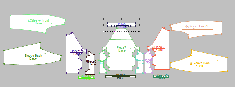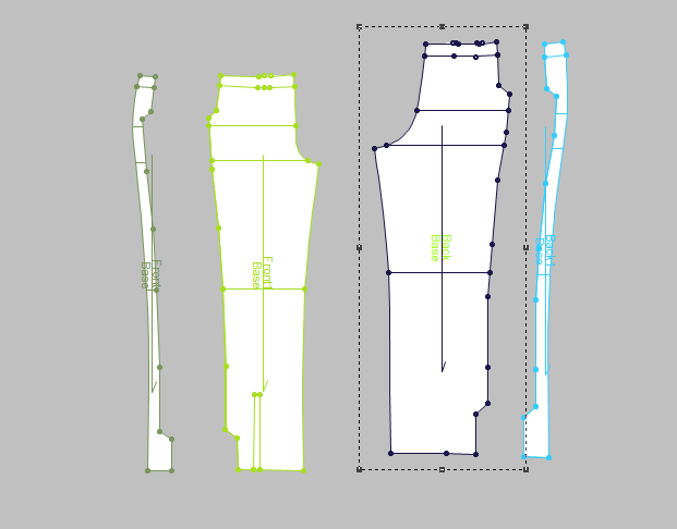 These are pattern pieces for a jacket, a raglan sleeve jacket, and a pair of pants that I've created from my collection within Optitex.
